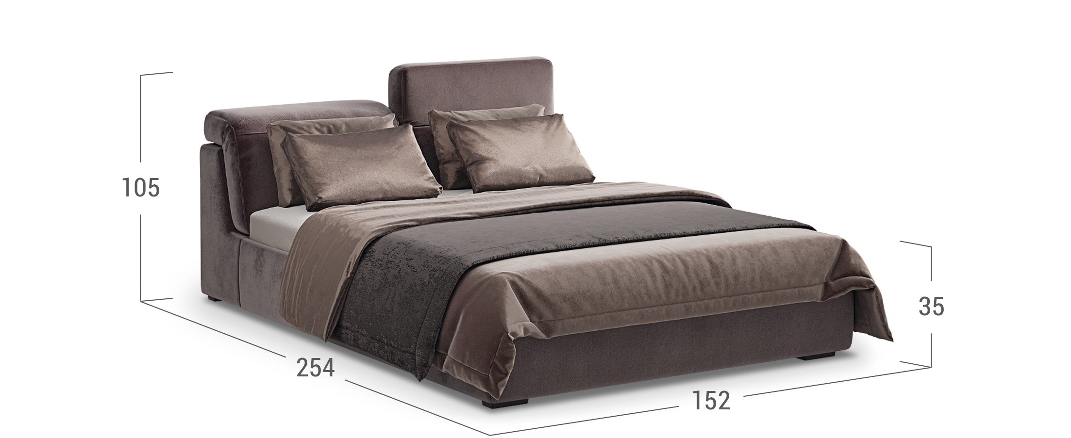 Мягкое изголовье имеет пять вариантов наклона подушек, позволяя Вам находить для себя максимально удобное положение – например, за чтением книги или просмотром телевизора. Вертикальное положение подушек создает более привычный образ кровати. Горизонтальное – более трендовый.
