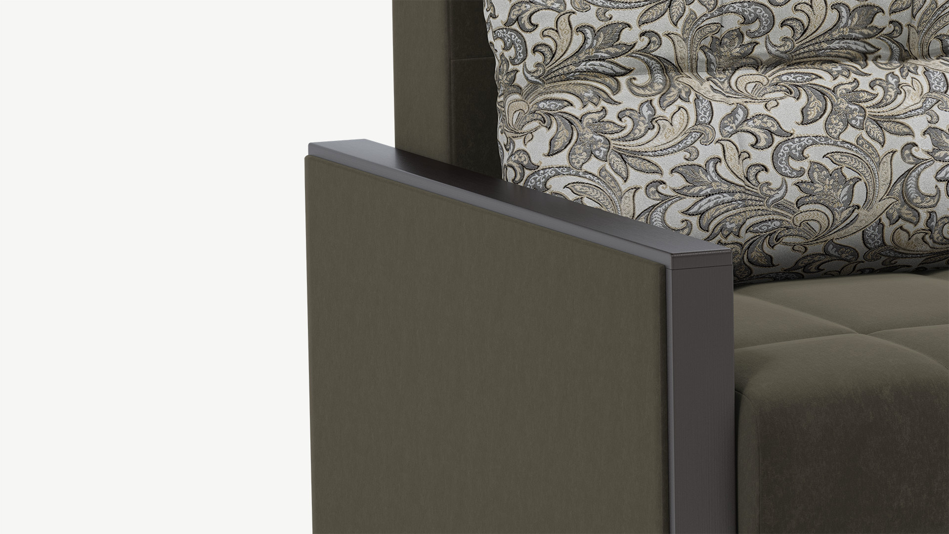 На подлокотники со столешницей Вы всегда сможете поставить чашечку чая. Имитируя фактуру дерева, декоративная накладка здесь буквально обрамляет подлокотники дивана, становясь стильным и практичным решением.