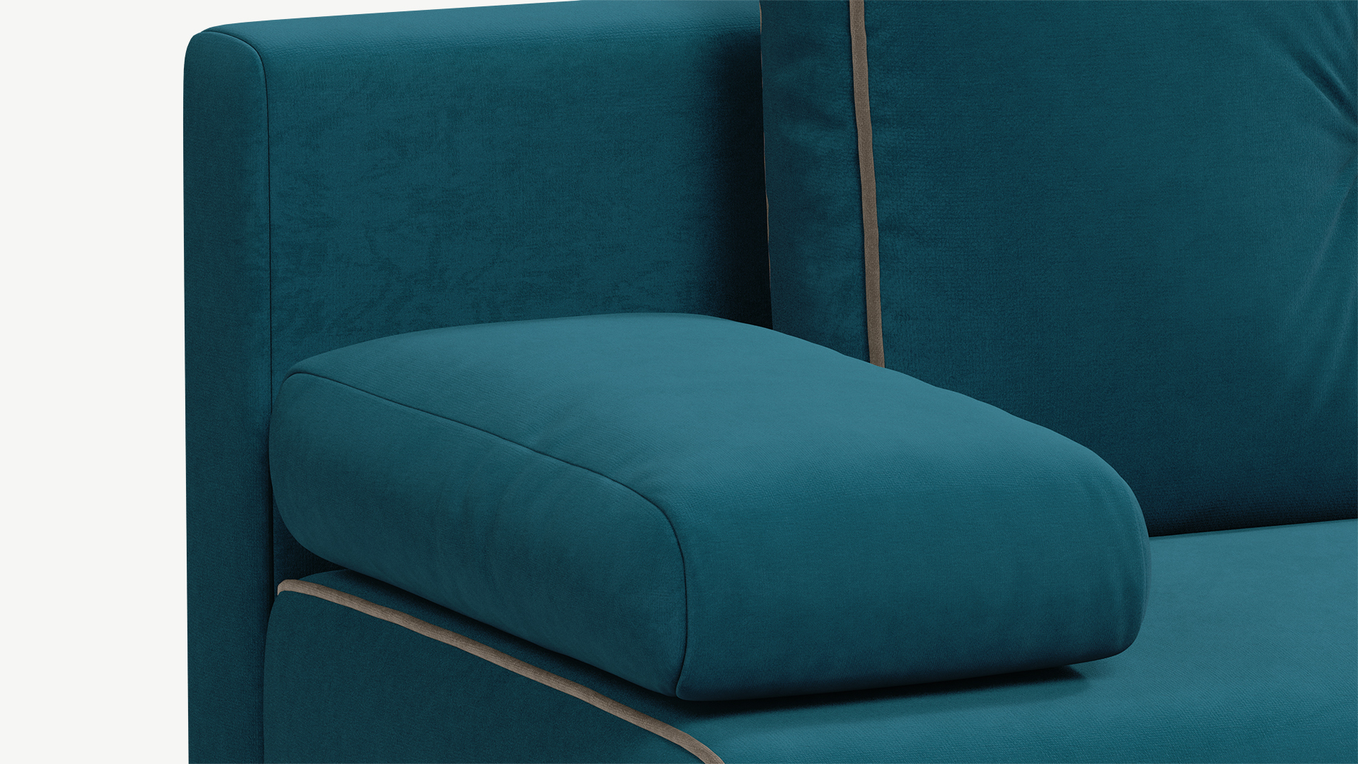 Контрастный кант, украшающий «срезы» на корпусе и приспинных подушках MOON FAMILY 043, лишь усиливает визуальную идентичность элементов, поддерживая эффект наборности.