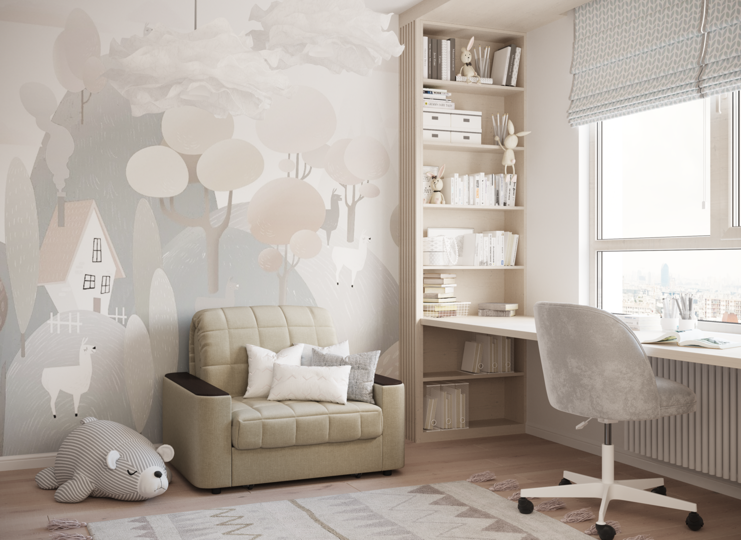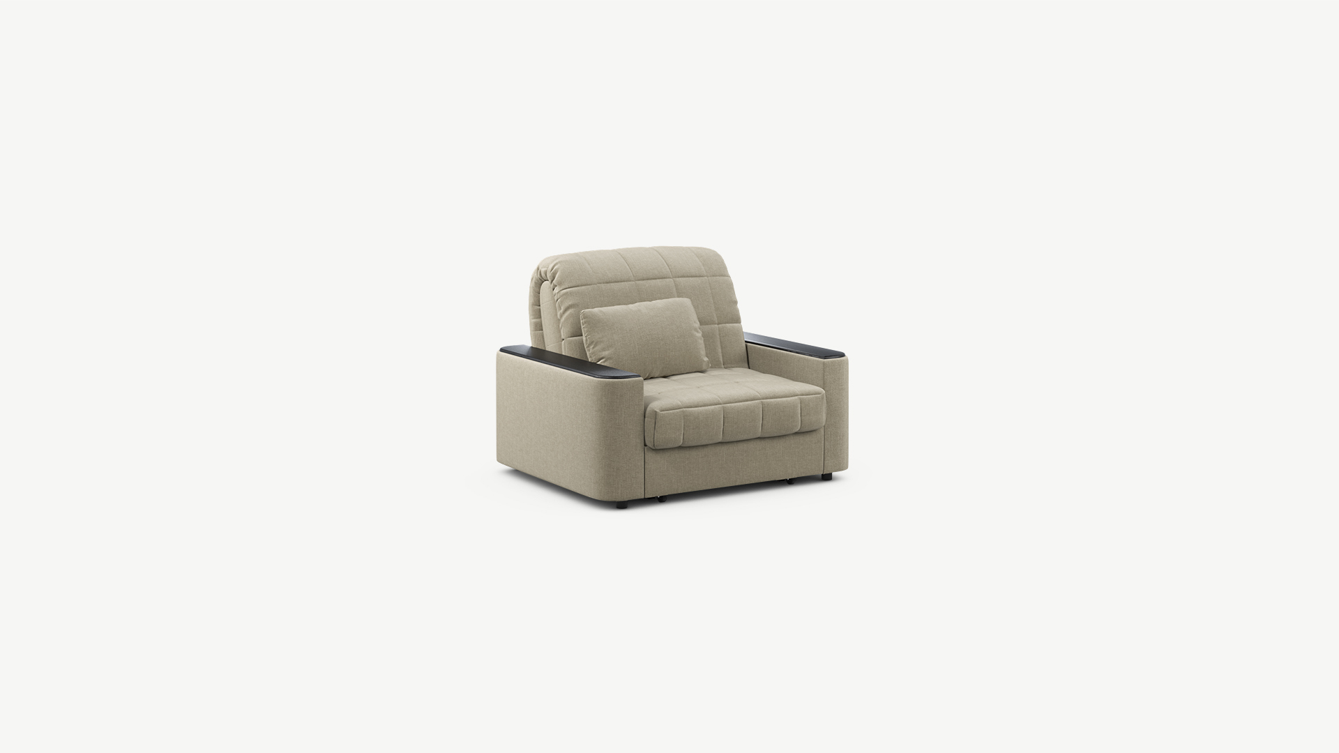 Объемные подлокотники — стильная деталь, отлично вписывающая кресло-кровать в интерьер современной городской квартиры.