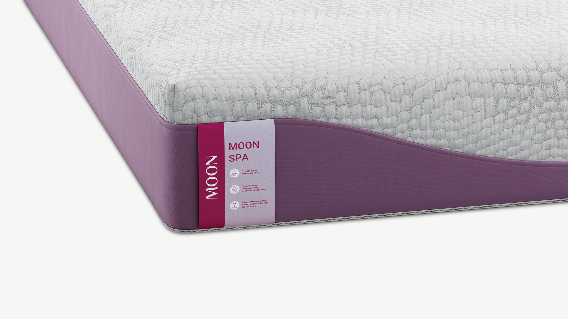 Работая над коллекцией MOON SPA, мы отдали предпочтение комплексному подходу. Это сочетание морских минералов и янтарной пены, инновационных пен с эффектом памяти, а также использование специального чехла с массажным эффектом. Таким образом, Вы получаете матрас, позволяющий ощутить расслабление и покой, аналогичные эффекту спа-процедур.