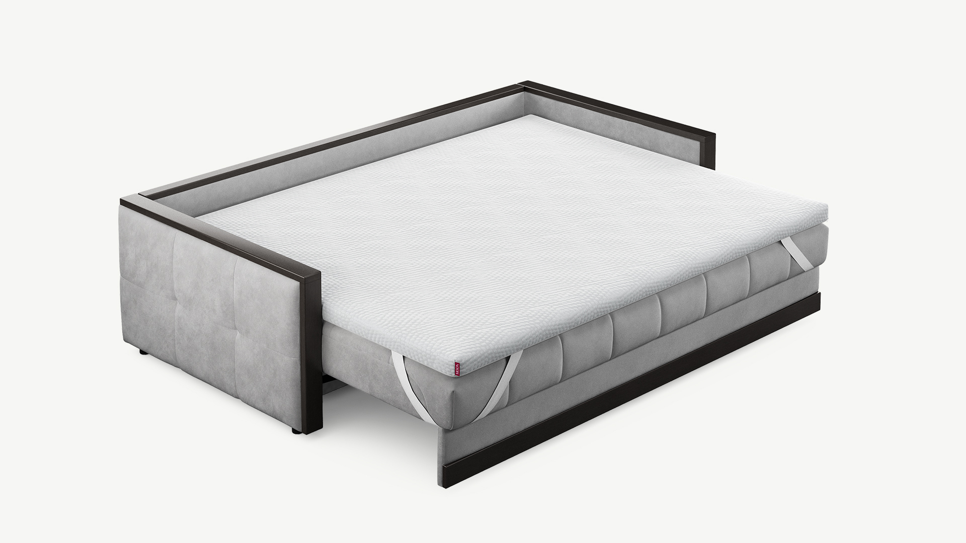 Топпер можно использовать как на диване, так и на матрасе. Фиксация на поверхности спального места осуществляется с помощью широких резинок в четырех угловых точках.