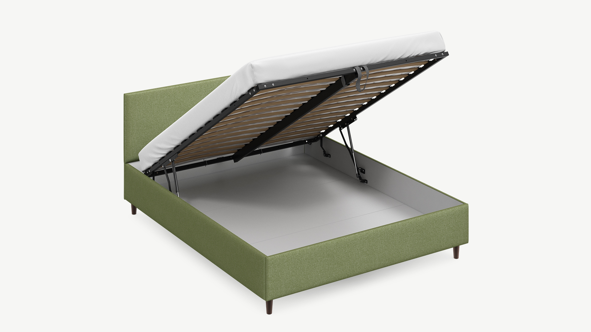 - Скрытая под основанием вместительная емкость без внутренних перегородок позволяет использовать всю площадь подкроватного пространства для хранения вещей.