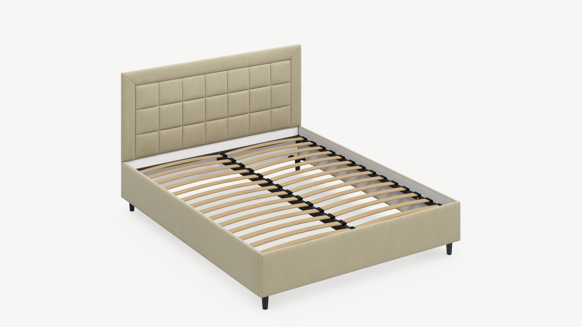 Проходящая по центру рамы металлическая траверса (поперечная балка) увеличенного сечения обеспечивает необходимую прочность основания с березовыми ламелями, препятствуя деформации конструкции.