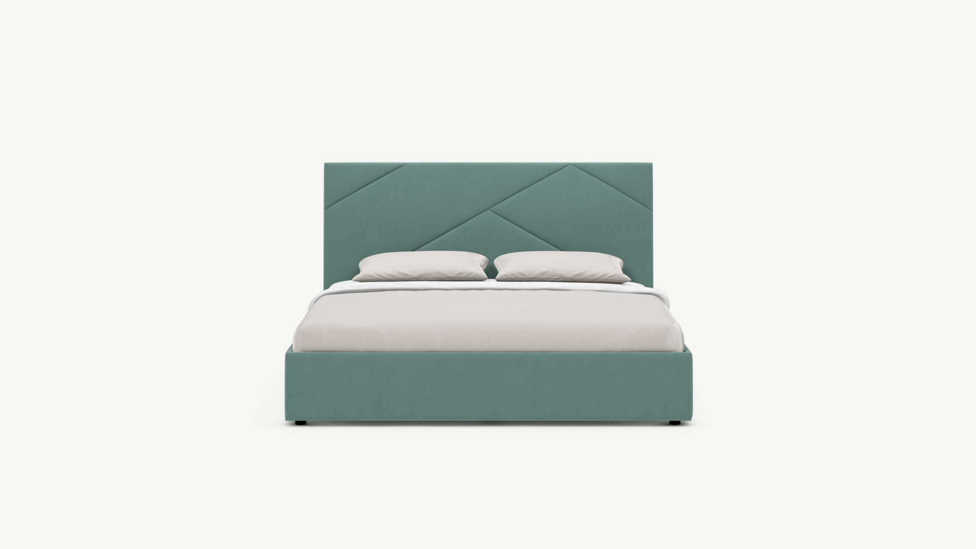MOON FAMILY 1257 привлекает внимание оригинальным исполнением: широкие полосы ткани эффектно пересекают периметр изголовья, создавая на нем графический орнамент. Элегантным и практичным акцентом служат скрытые карманы, расположенные по его углам. Лаконичные формы объемных царг создают единый гармоничный образ и фокусируют внимание на центральном текстурном элементе кровати.