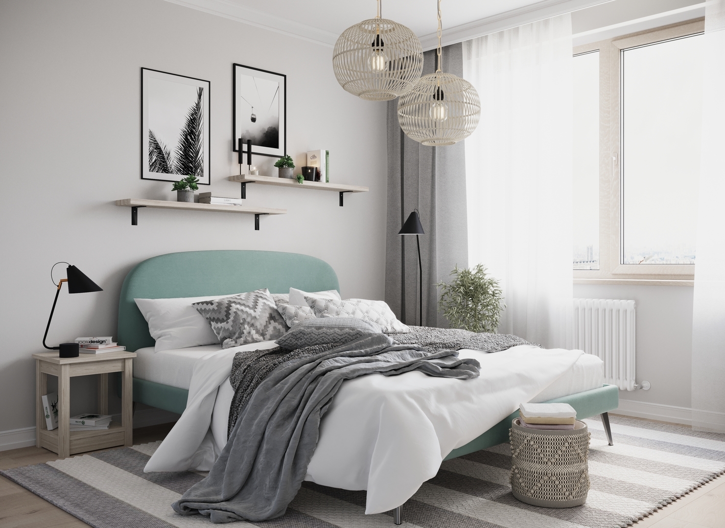 Создать гармоничный интерьер и завершить образ спальни помогут дополнительные аксессуары, например: тумбы, банкетки, подушки.