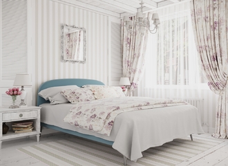 Фактура обивочного материала подбирается дизайнерами с учетом технологических и стилевых особенностей кровати.