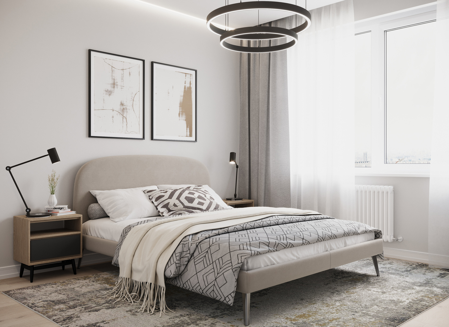 Создать гармоничный интерьер и завершить образ спальни помогут дополнительные аксессуары, например: тумбы, банкетки, подушки.