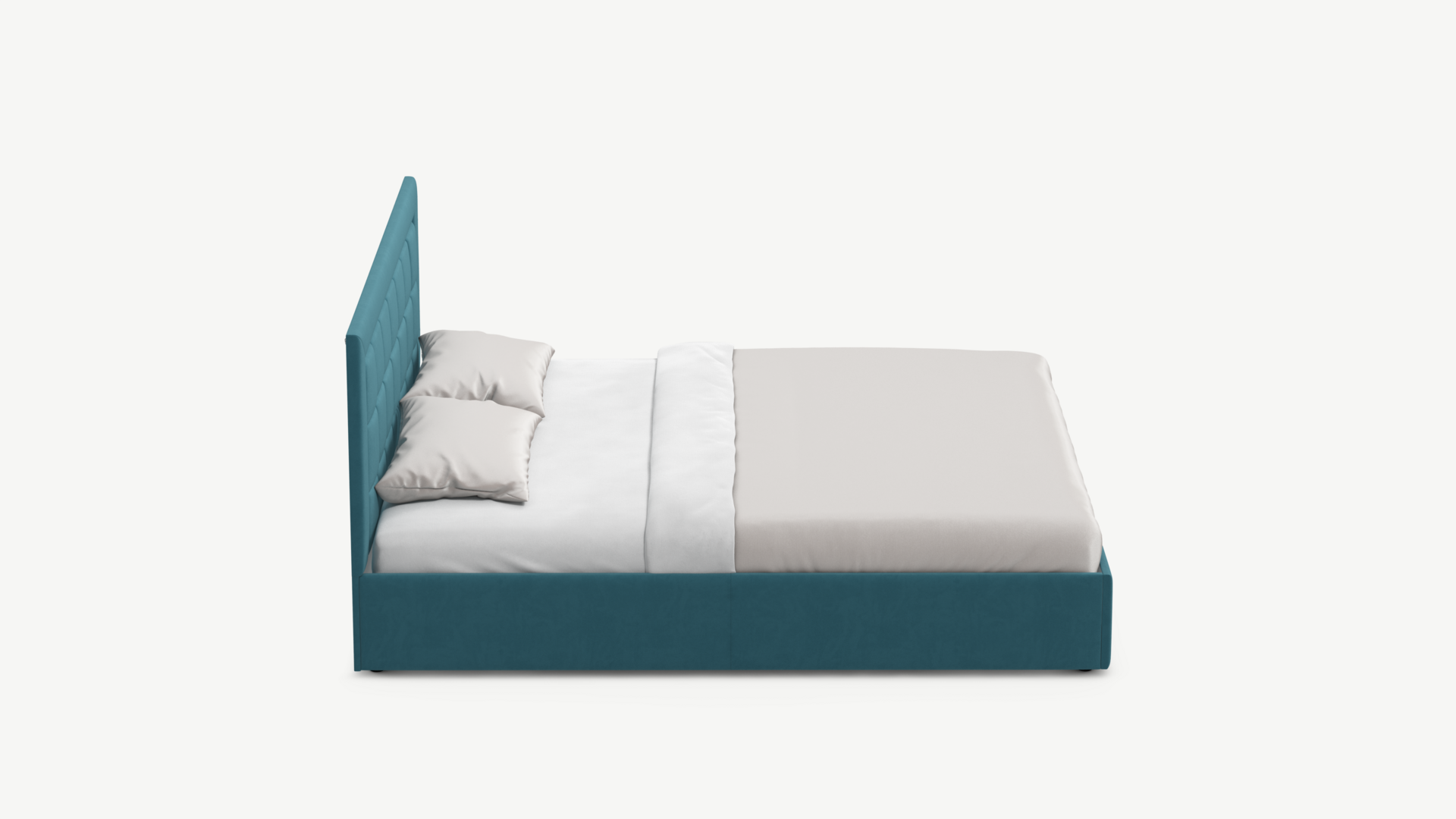 Изголовье декорировано рельефным рисунком стежки в крупный квадрат, получившим особую фактуру за счет глубины шва.