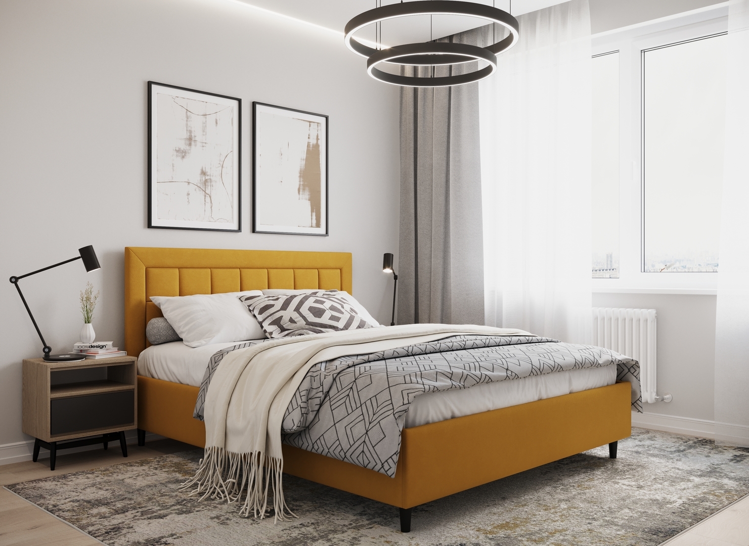 Создать гармоничный интерьер и завершить образ спальни помогут дополнительные аксессуары, например: тумбы, банкетки, подушки.