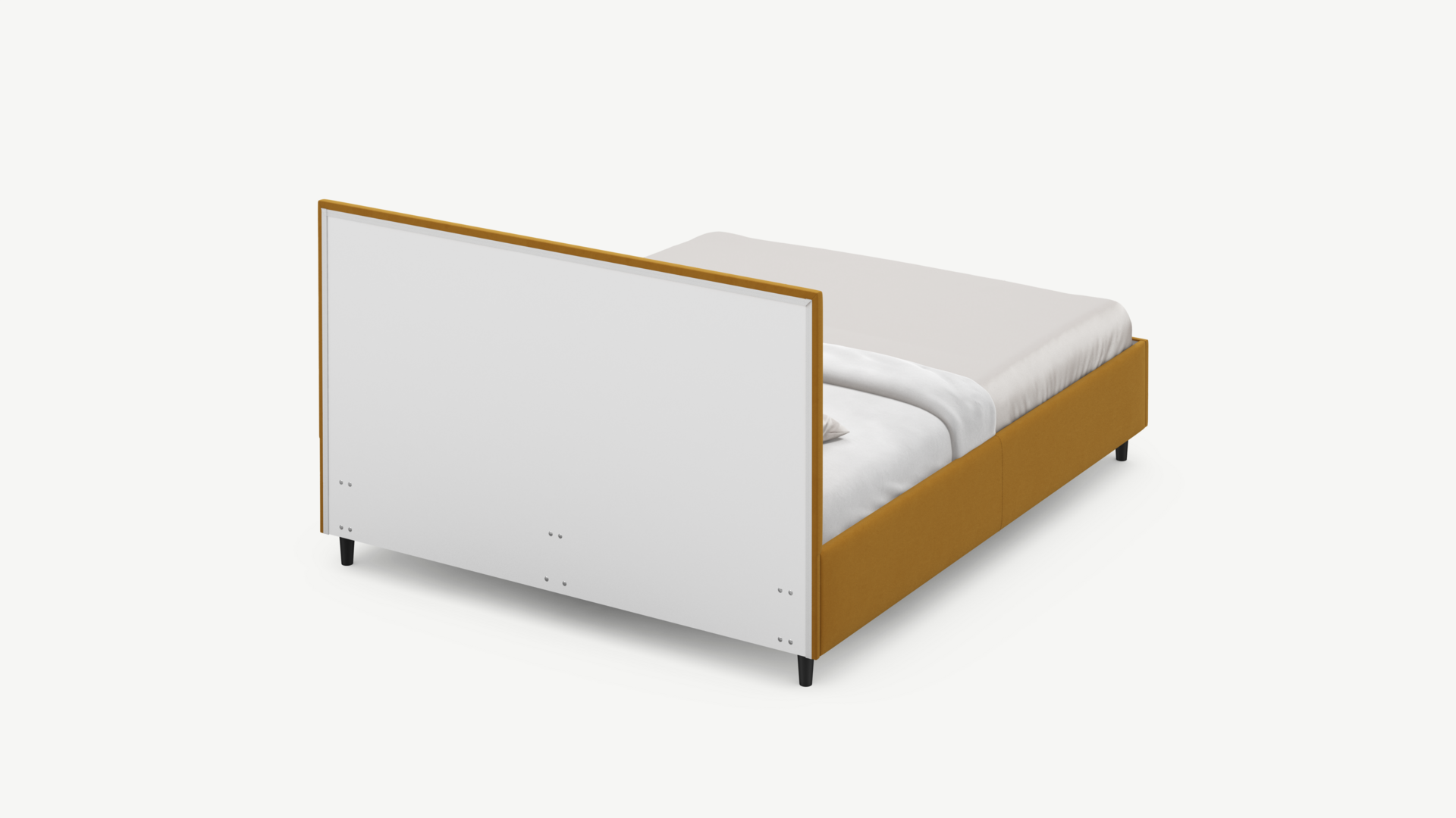 Стежка помещена в центр изголовья и обрамлена, словно картина. Объемные царги завершают цельную фигуру кровати и становятся гармоничным дополнением ее образа.