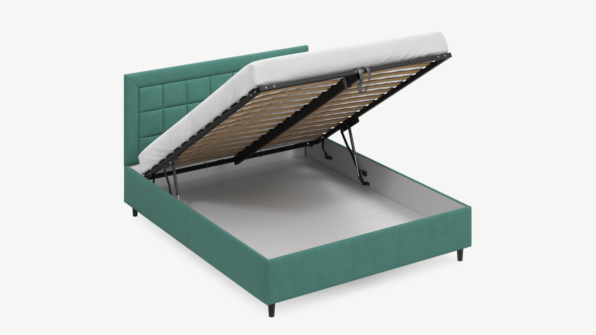 • Скрытая под основанием вместительная емкость без внутренних перегородок позволяет использовать всю площадь подкроватного пространства для хранения вещей.