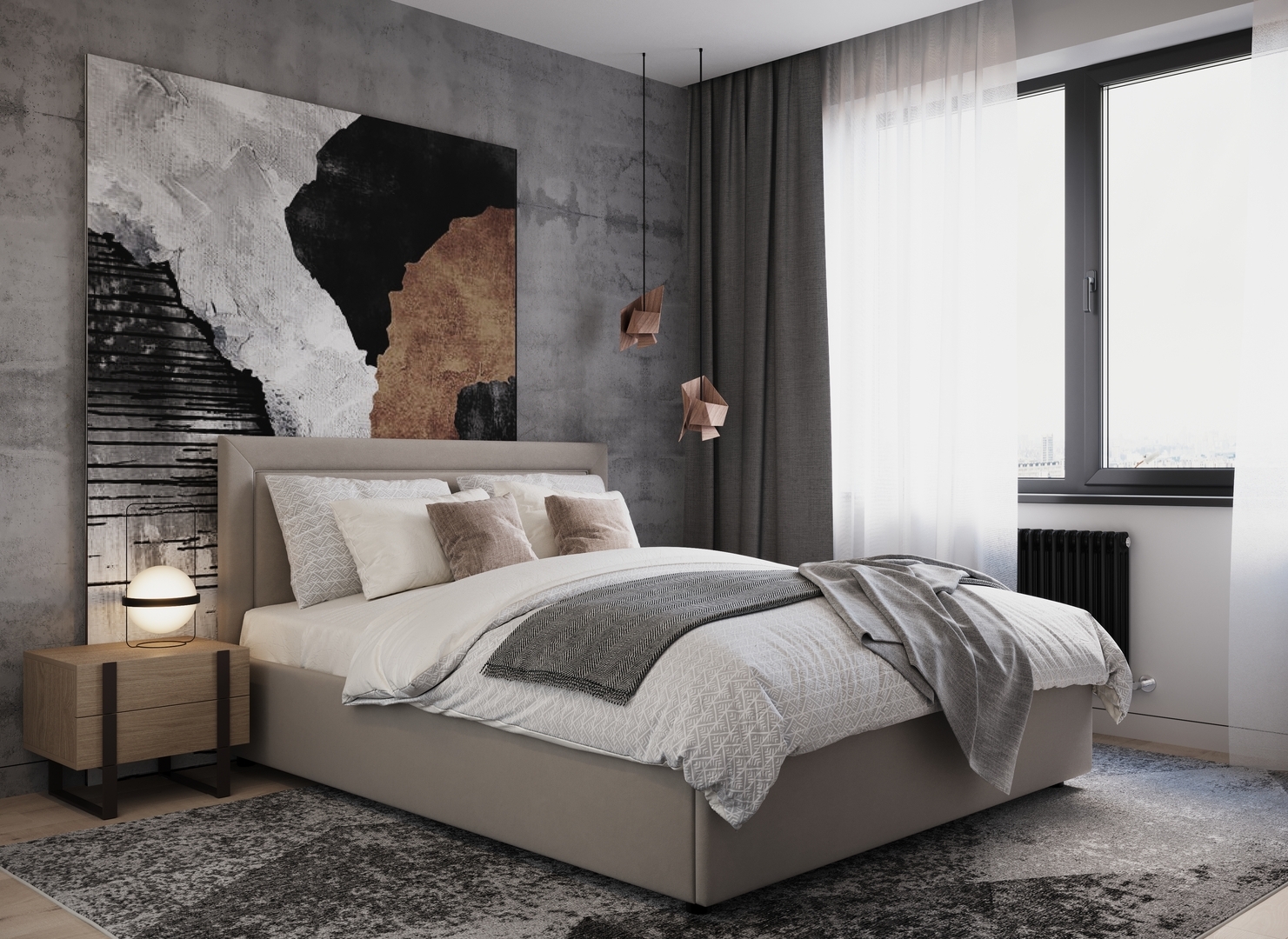 Создать гармоничный интерьер и завершить образ спальни помогут дополнительные аксессуары, например: тумбы, банкетки, подушки.