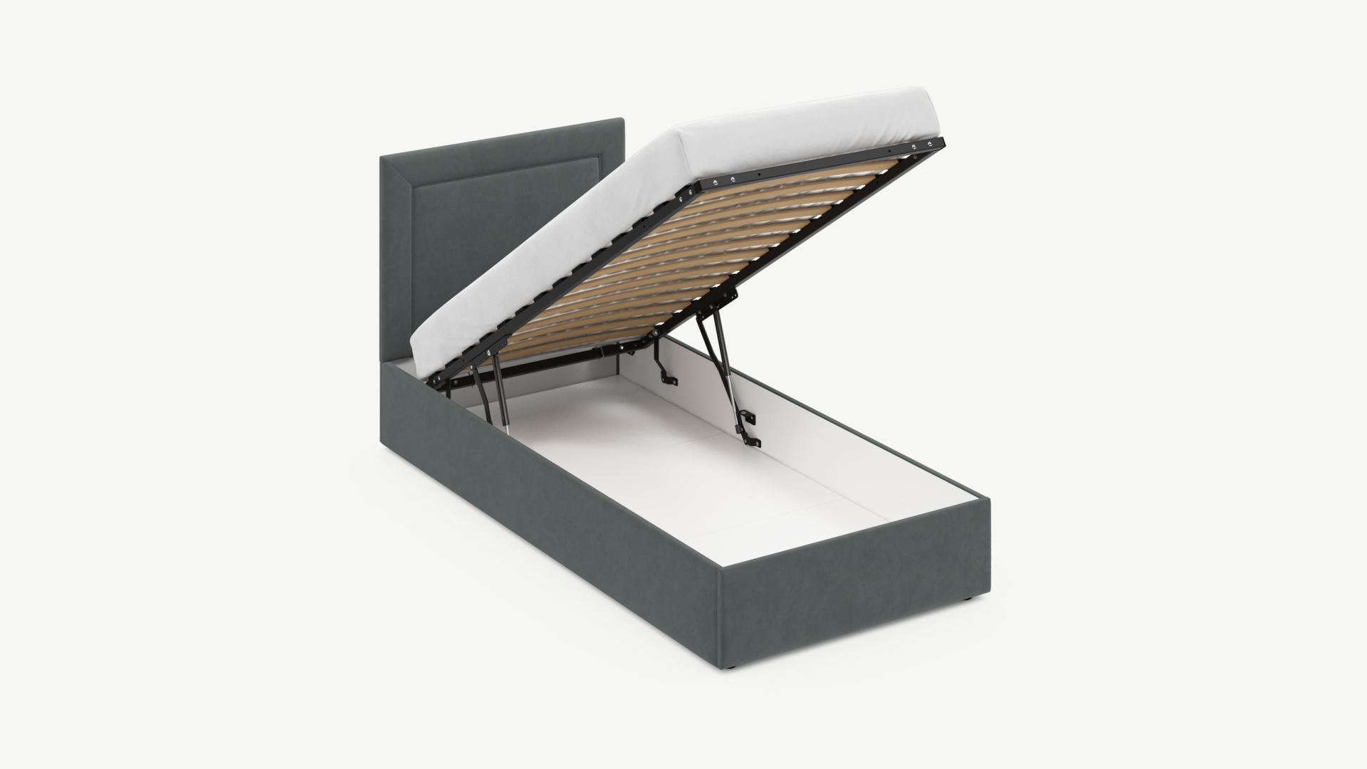 Регулируемый подъемный механизм с газовыми амортизаторами позволяет плавно и бесшумно поднимать и опускать спальное место.