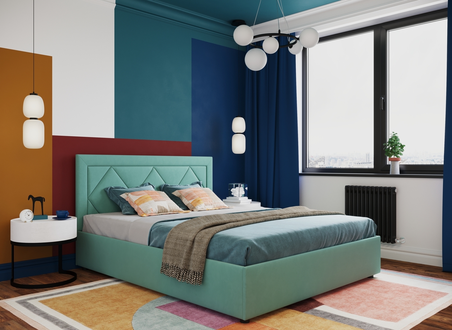 Создать гармоничный интерьер и завершить образ спальни помогут дополнительные аксессуары, например: тумбы, банкетки, подушки.