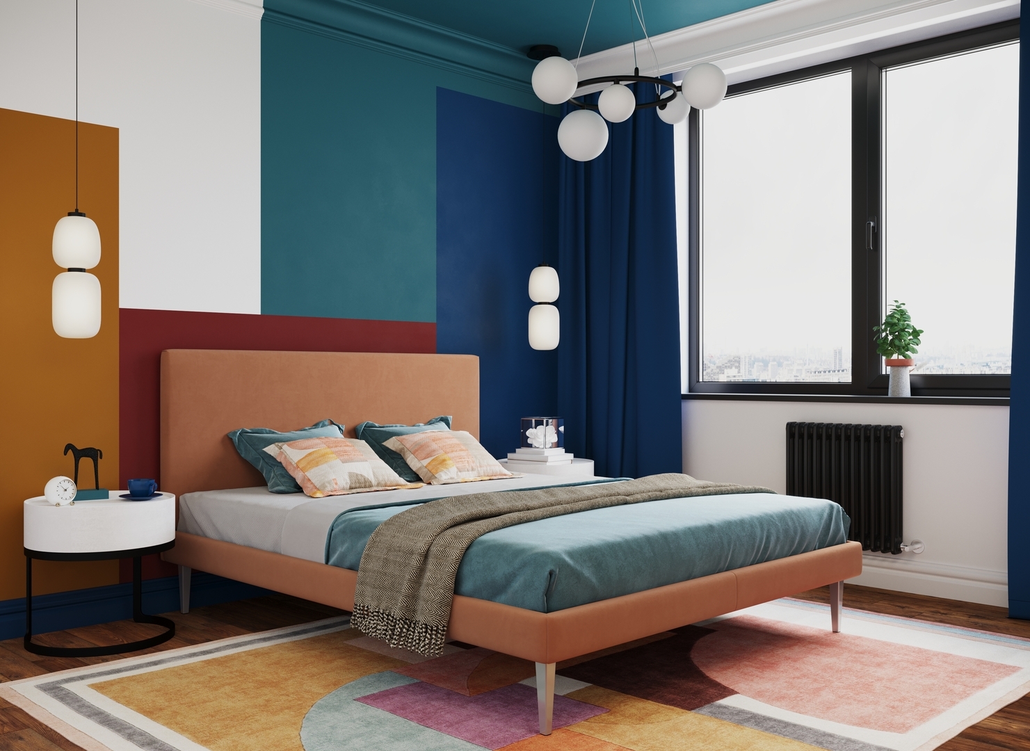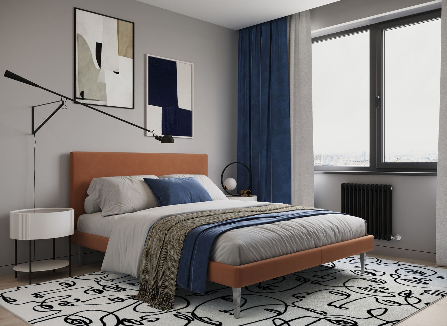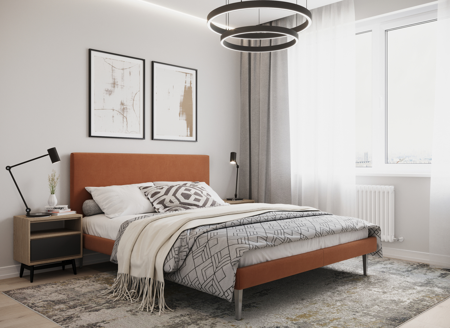 Создать гармоничный интерьер и завершить образ спальни помогут дополнительные аксессуары, например: тумбы, банкетки, подушки.