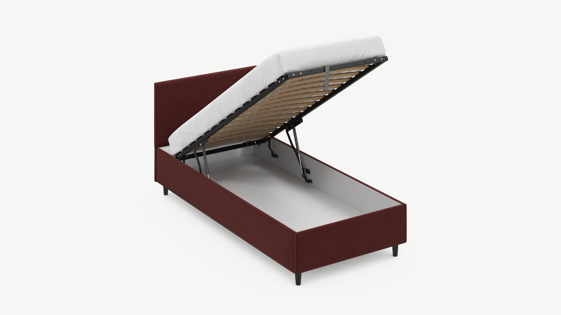Регулируемый подъемный механизм с газовыми амортизаторами позволяет плавно и бесшумно поднимать и опускать спальное место.