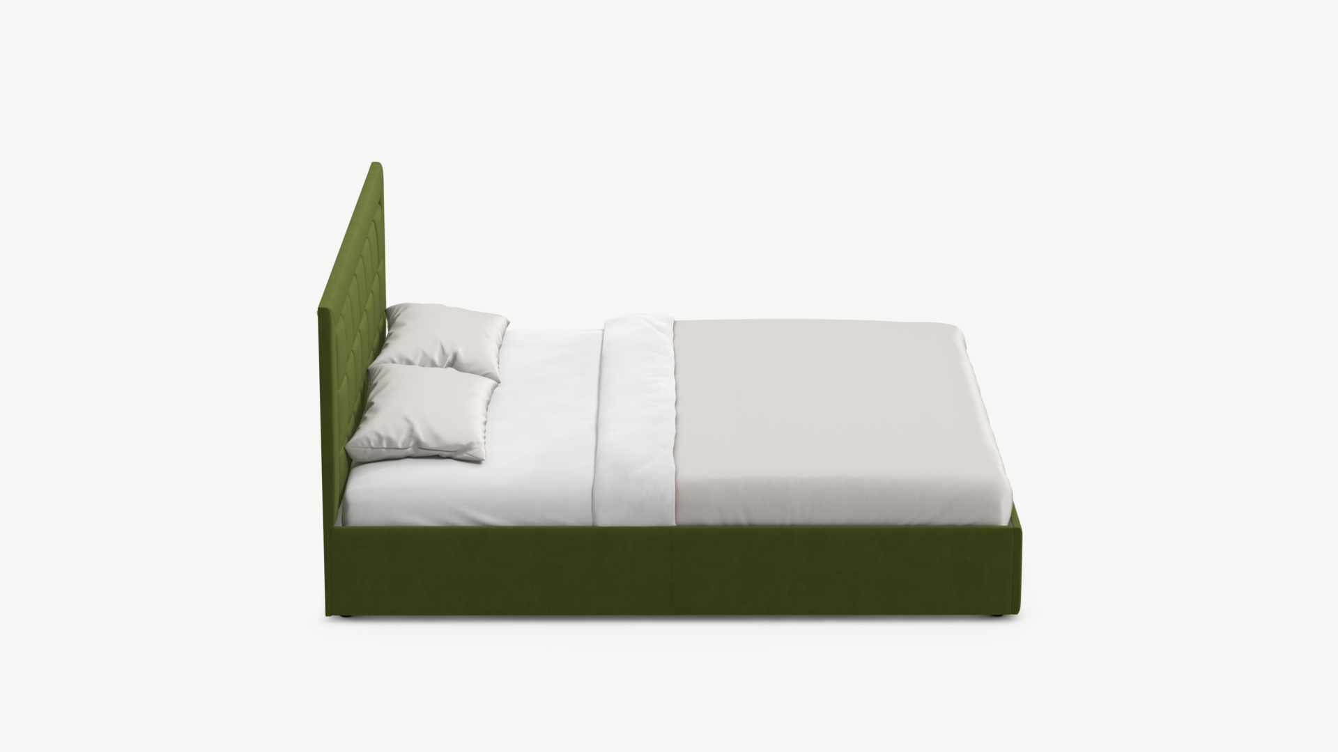 Изголовье декорировано рельефным рисунком стежки в крупный квадрат, получившим особую фактуру за счет глубины шва.