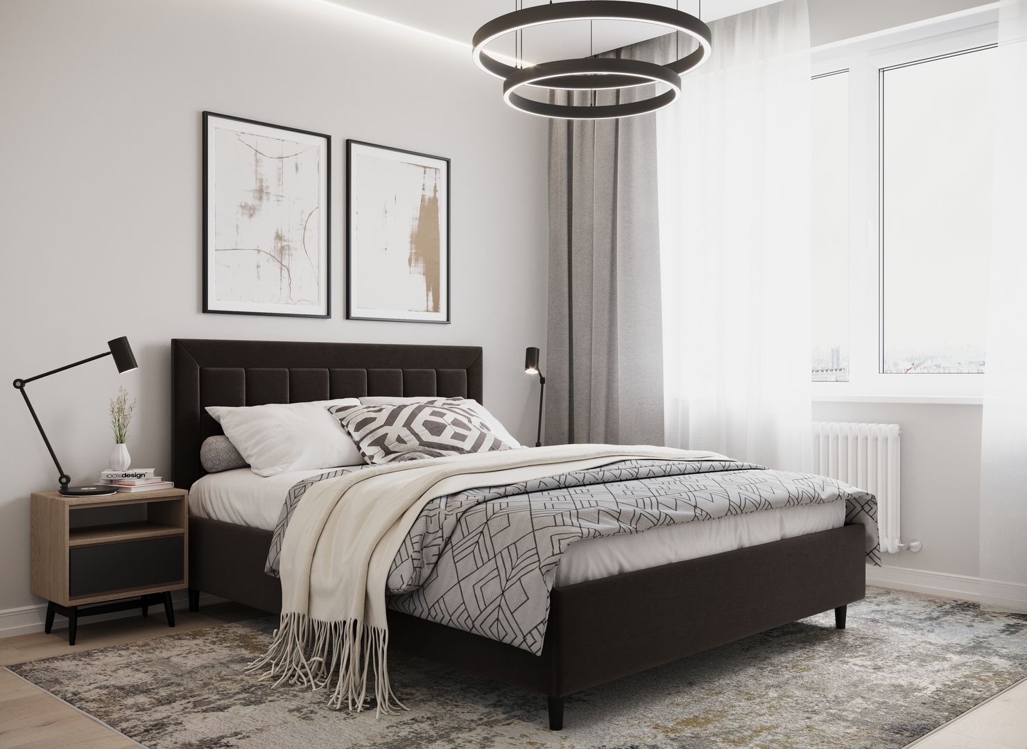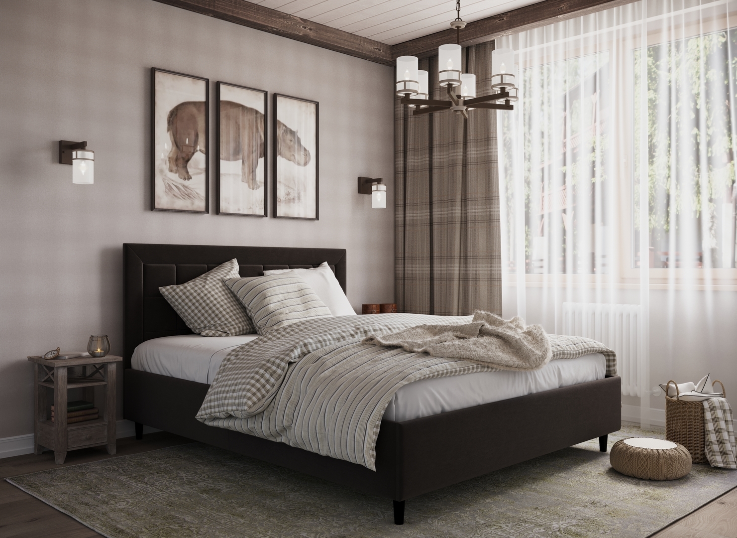 Создать гармоничный интерьер и завершить образ спальни помогут дополнительные аксессуары, например: тумбы, банкетки, подушки.