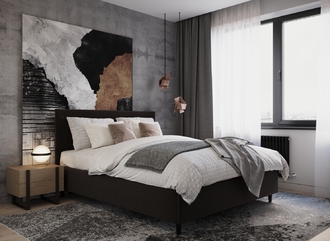 Стежка помещена в центр изголовья и обрамлена, словно картина. Объемные царги становятся гармоничным дополнением образа и завершают цельную фигуру кровати.