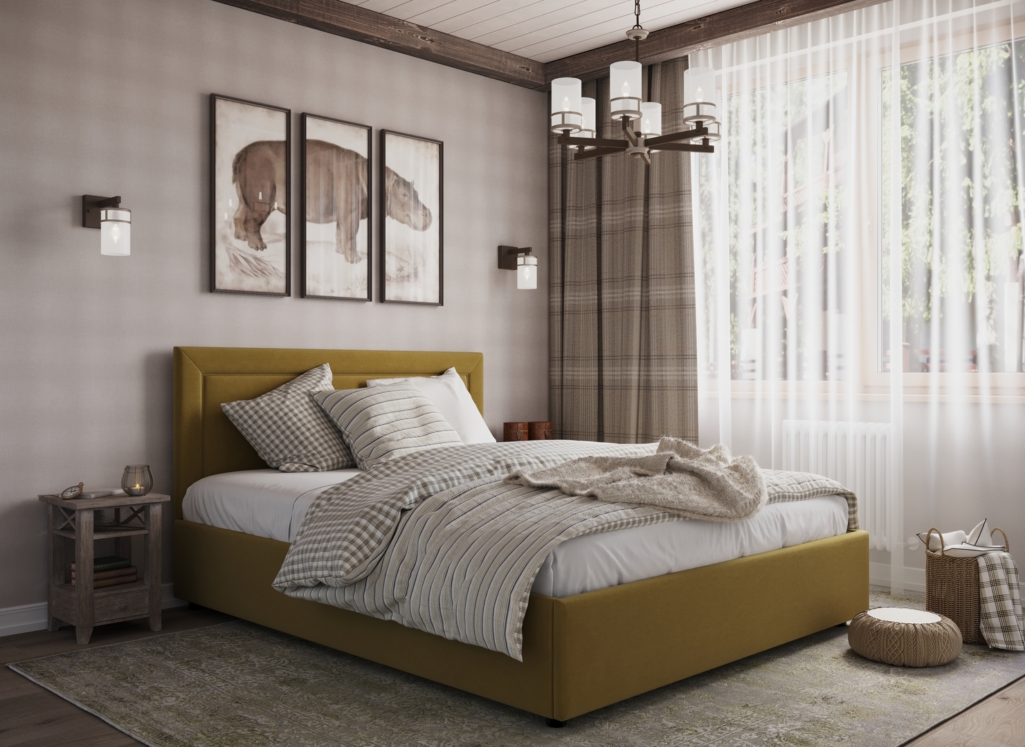 Создать гармоничный интерьер и завершить образ спальни помогут дополнительные аксессуары, например: тумбы, банкетки, подушки.