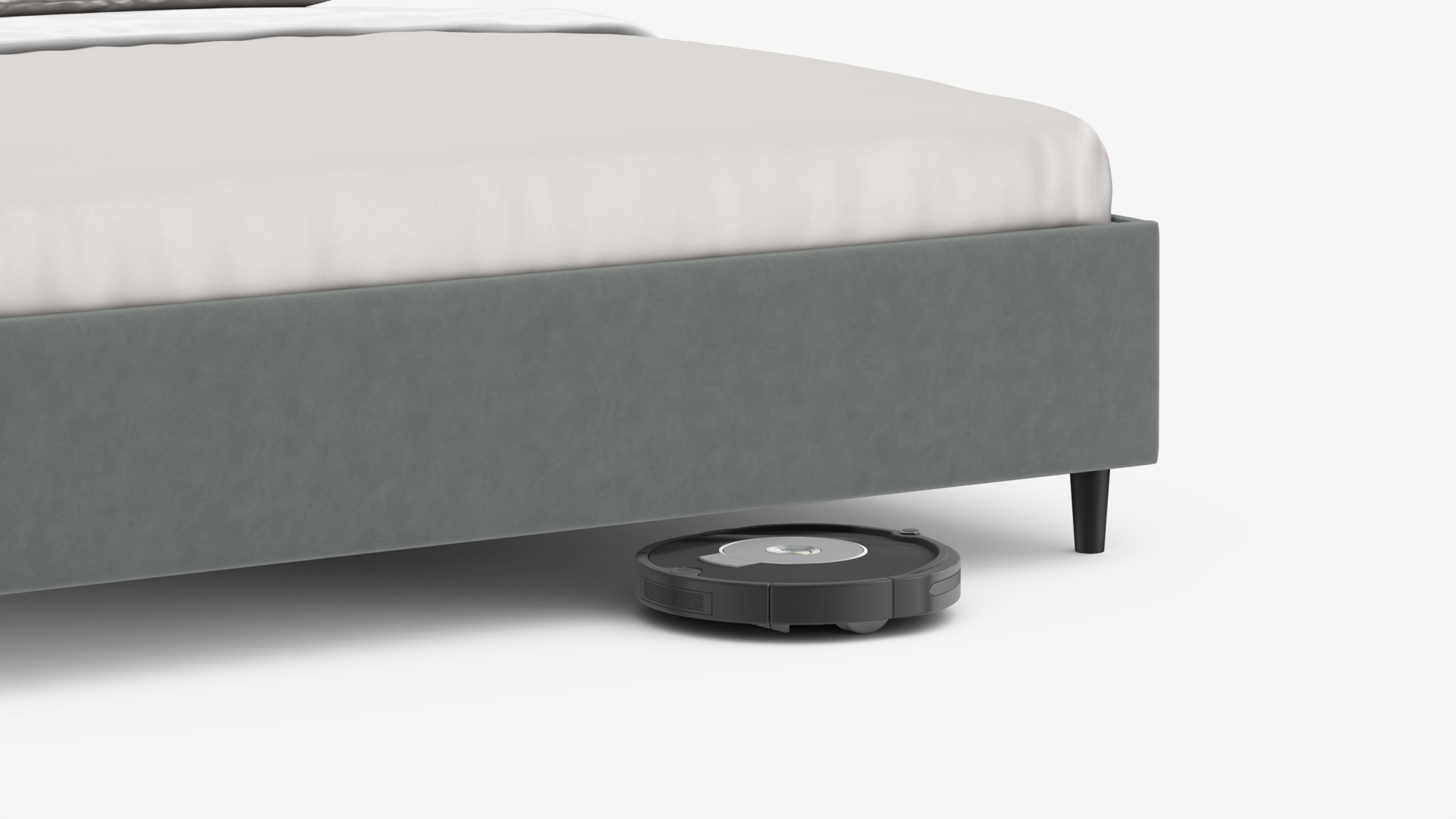 Благодаря высоким опорам под кроватью проходит робот-пылесос и легко проводится влажная уборка, что обеспечивает чистоту и порядок в доме.