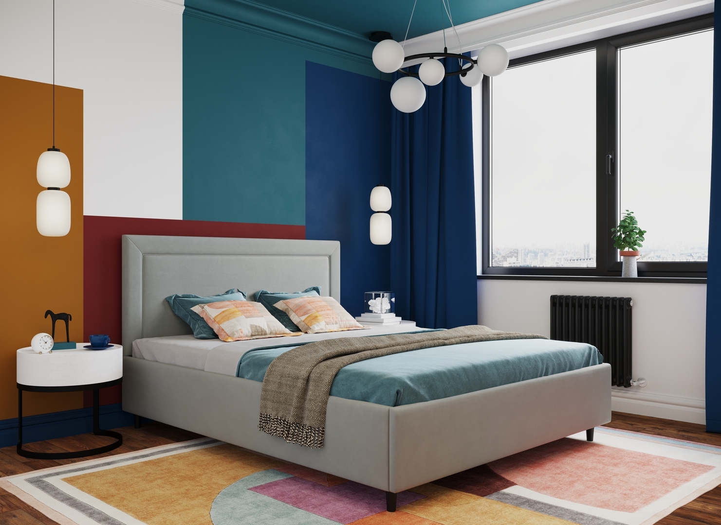 Создать гармоничный интерьер, а также целостный образ спальни помогут дополнительные аксессуары - например, тумбы, банкетки, подушки.