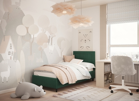 Фактура обивочного материала подбирается дизайнерами с учетом технологических и стилевых особенностей кровати.