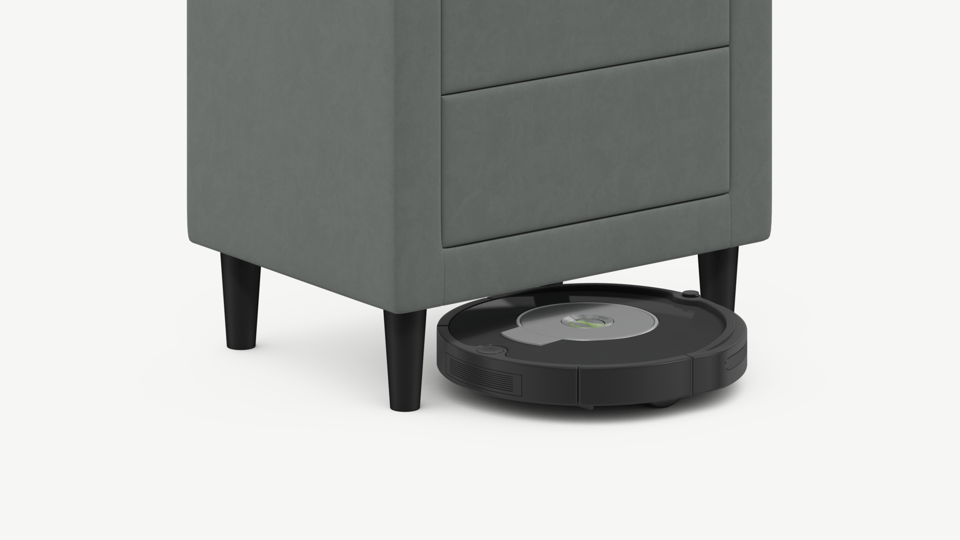 Под тумбой с высокими опорами проходит робот-пылесос и легко проводится влажная уборка, что обеспечивает чистоту и порядок в доме.