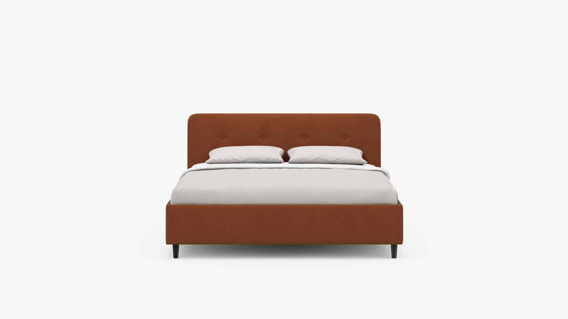 Царга, задающая пропорции, благодаря гладкости своей фактуры подчеркивает центральный элемент декора. Высокие опоры приподнимают фигуру кровати над полом и добавляют её образу визуальной легкости.
