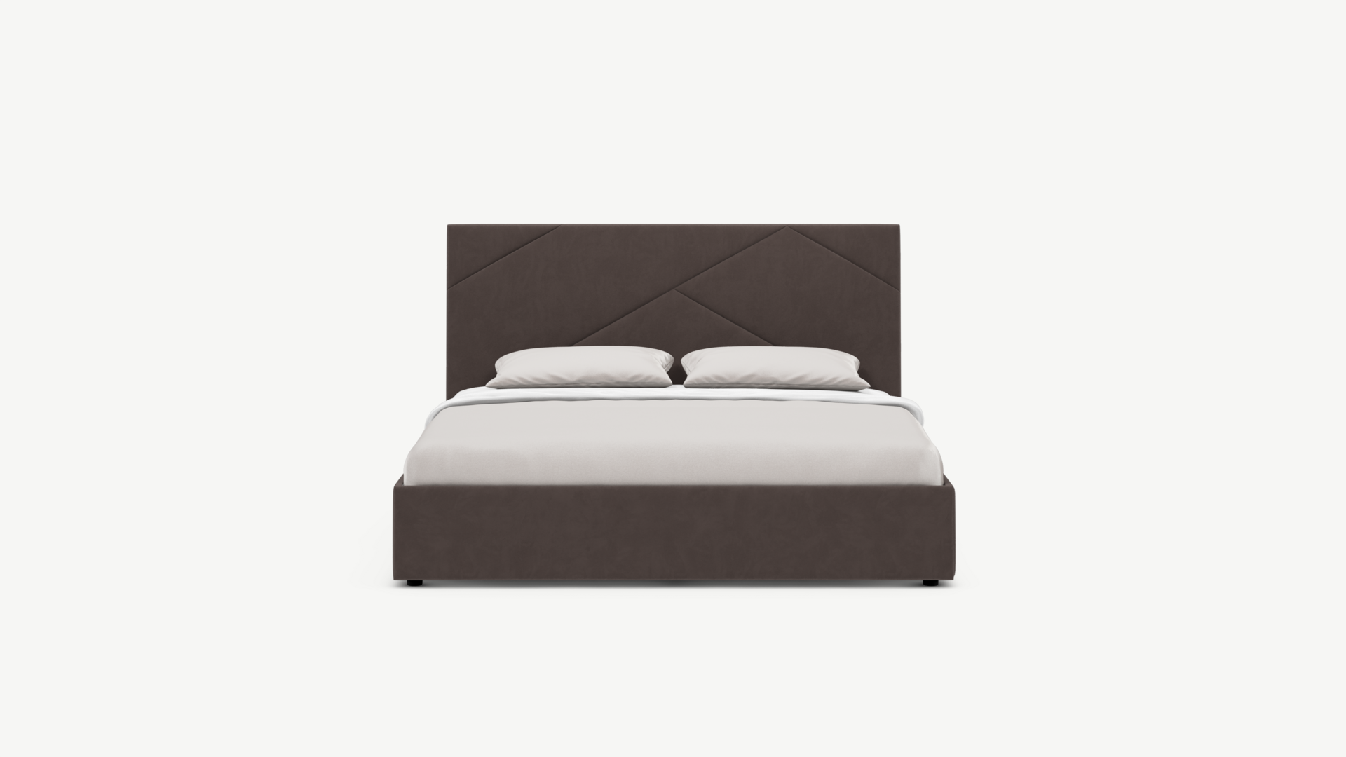 MOON FAMILY 1257 привлекает внимание оригинальным исполнением: широкие полосы ткани эффектно пересекают периметр изголовья, создавая на нем графический орнамент. Элегантным и практичным акцентом служат скрытые карманы, расположенные по его углам. Лаконичные формы объемных царг создают единый гармоничный образ и фокусируют внимание на центральном текстурном элементе кровати.