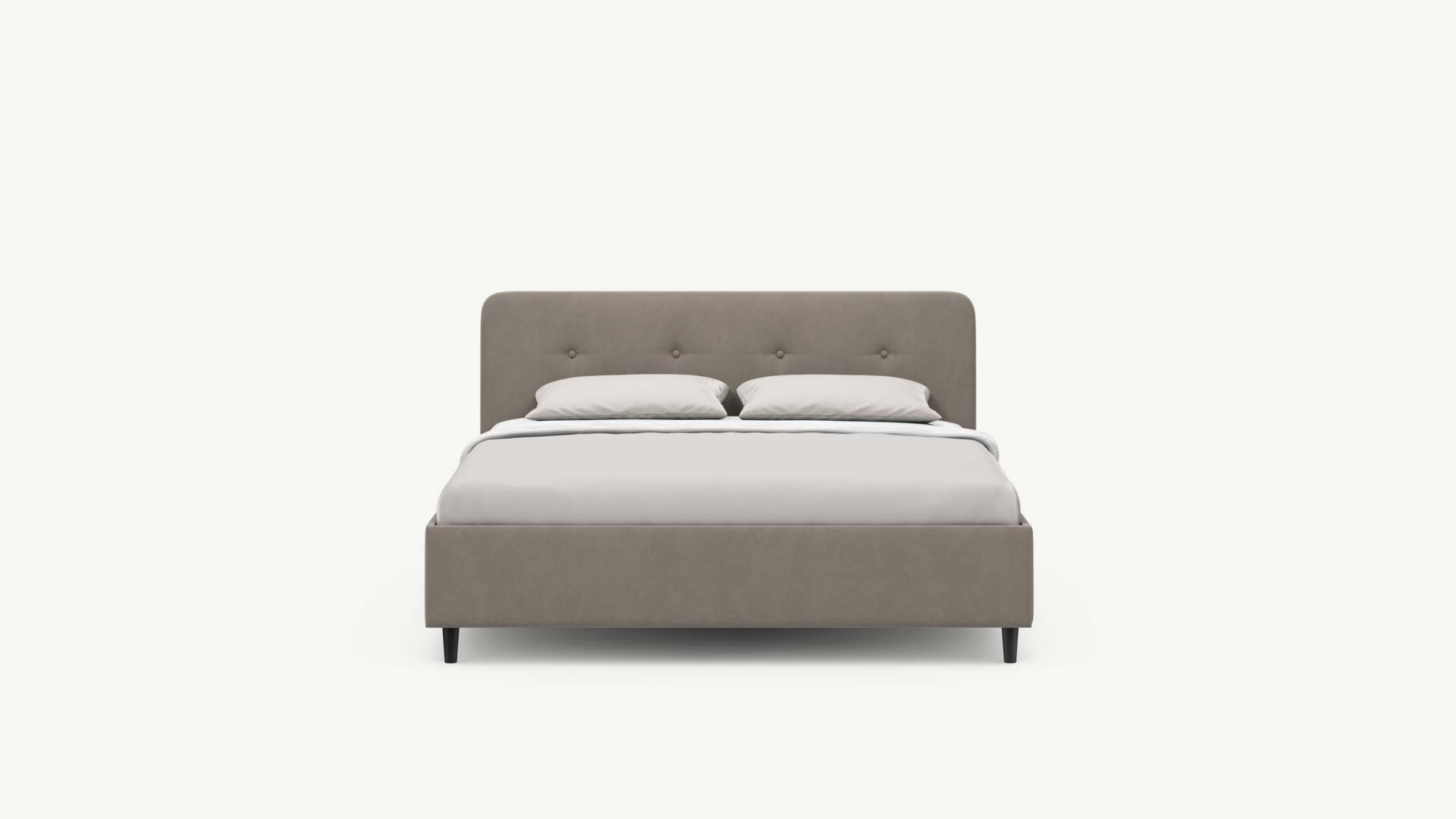 Царга, задающая пропорции, благодаря гладкости своей фактуры подчеркивает центральный элемент декора. Высокие опоры приподнимают фигуру кровати над полом и добавляют её образу визуальной легкости.