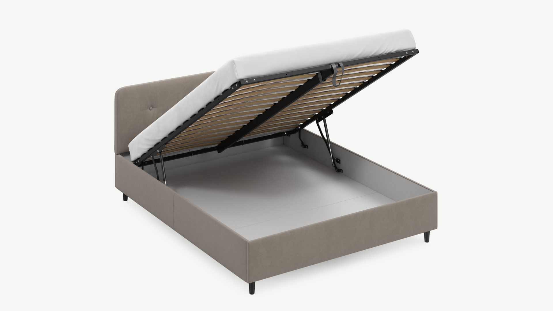 - Скрытая под основанием вместительная емкость без внутренних перегородок позволяет использовать всю площадь подкроватного пространства для хранения вещей.