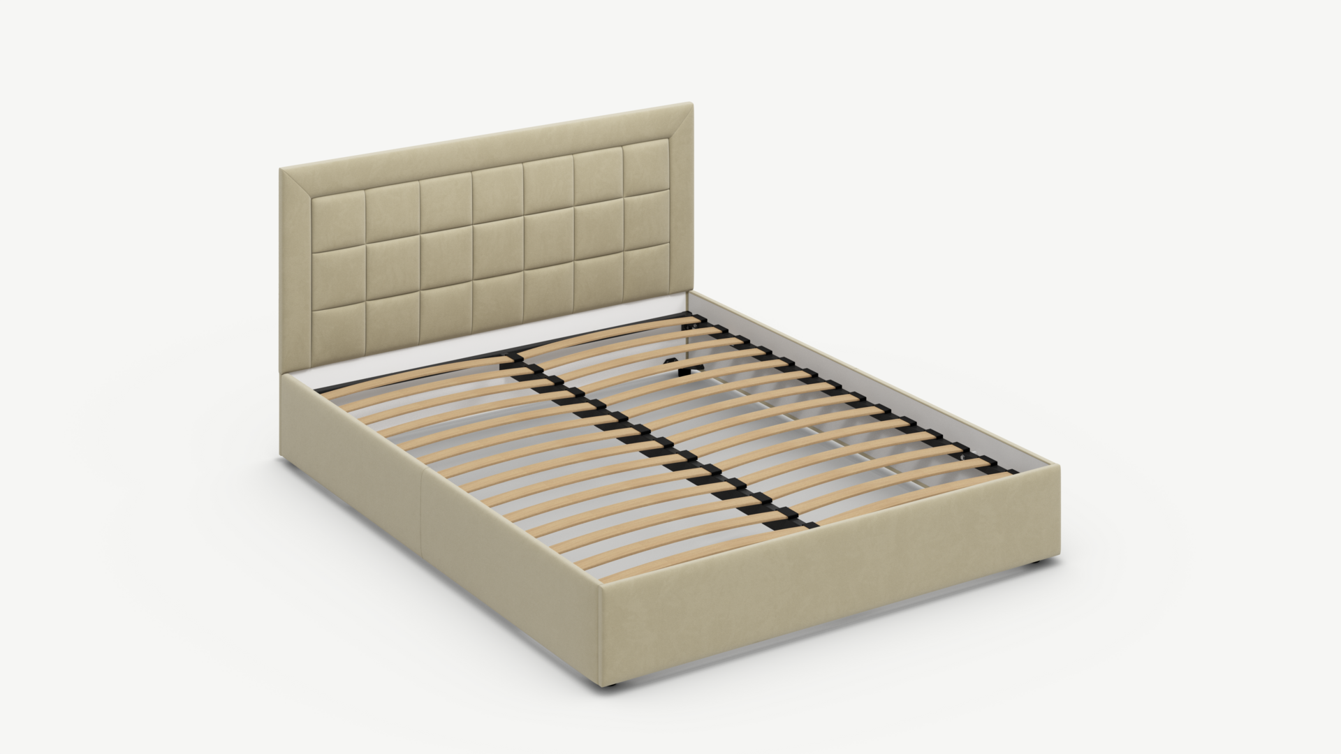 Проходящая по центру рамы металлическая траверса (поперечная балка) увеличенного сечения обеспечивает необходимую прочность основания с березовыми ламелями, препятствуя деформации конструкции.