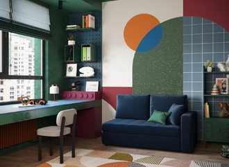 Спинка, выполненная в обивочной ткани, позволяет ставить диван в центре комнаты и зонировать пространство.