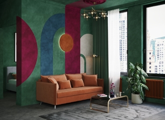 Спинка, выполненная в обивочной ткани, позволяет ставить диван в центре комнаты и зонировать пространство.