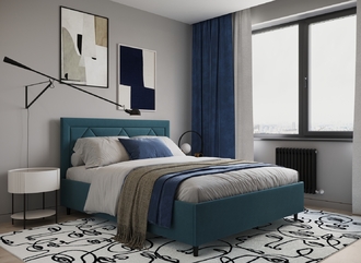 Фактура обивочного материала подбирается дизайнерами с учетом технологических и стилевых особенностей кровати.