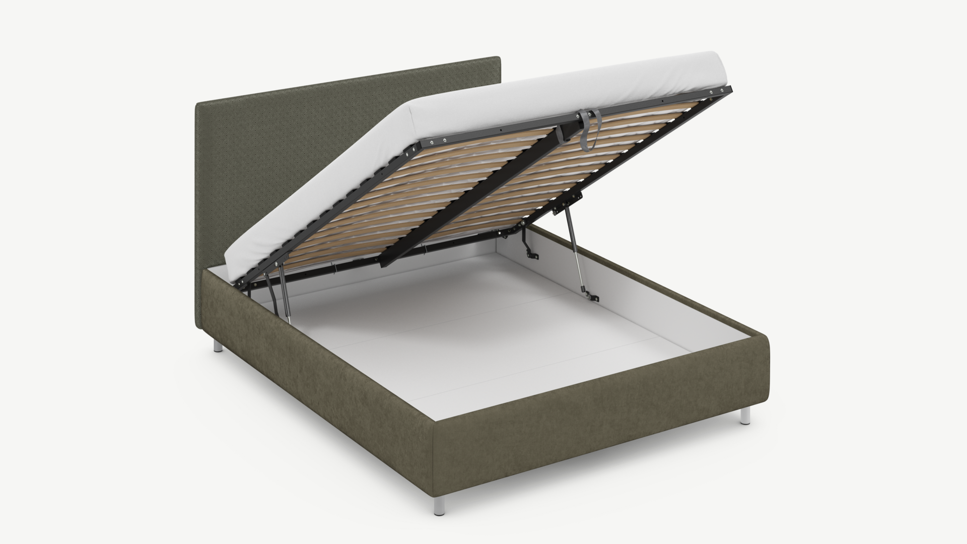 - Скрытая под основанием вместительная емкость без внутренних перегородок позволяет использовать всю площадь подкроватного пространства для хранения вещей.