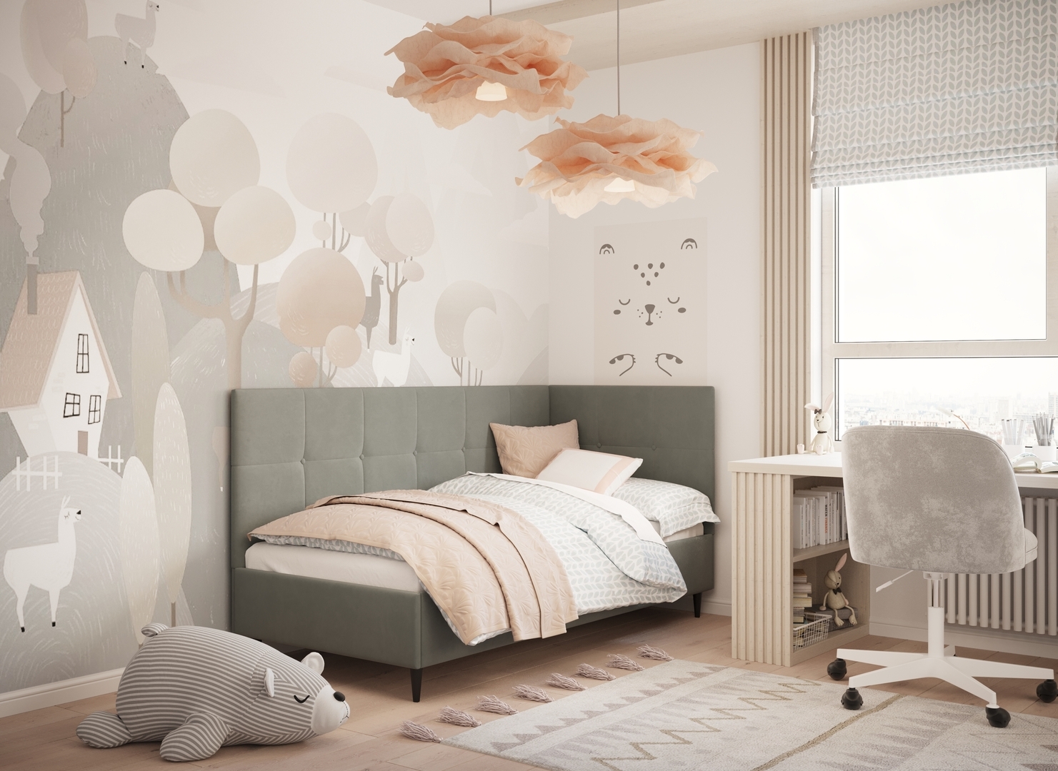 MOON FAMILY 1261 объединяет функциональность и стиль, создавая гармоничное пространство для отдыха и творчества. Кровать доступна в левостороннем и правостороннем исполнении, что позволяет легко адаптировать ее под любые интерьерные особенности.