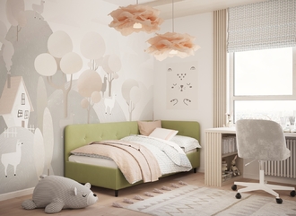 В подростковой комнате эта кровать станет стильным акцентом окружающего интерьера и возьмет на себя роль удобной кушетки для друзей, зашедших в гости.