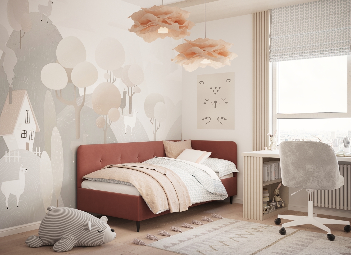 В подростковой комнате эта кровать станет стильным акцентом окружающего интерьера и возьмет на себя роль удобной кушетки для друзей, зашедших в гости.